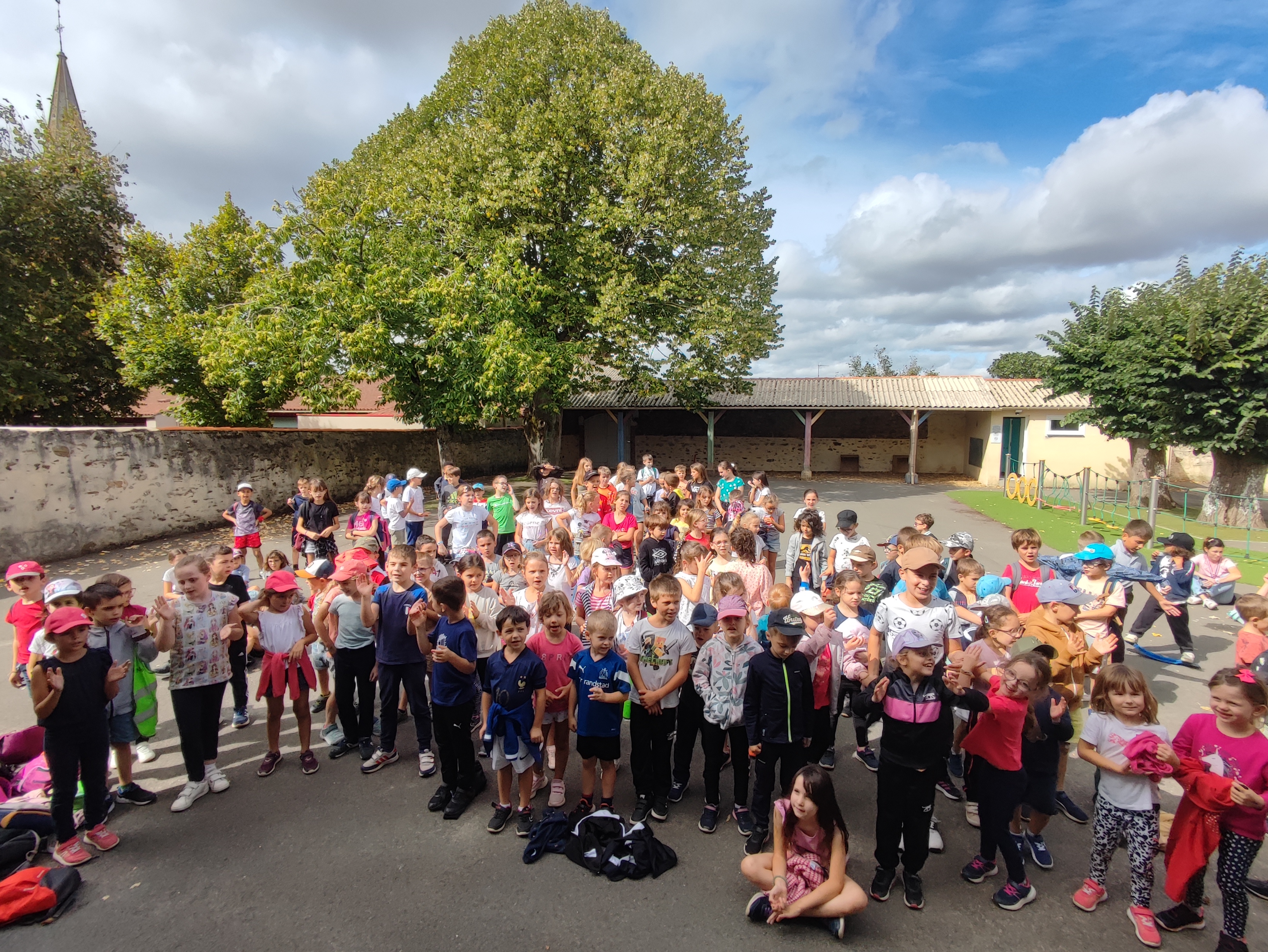 Mardi 19 septembre, tous les enfants du RPI se sont réunis à l’école de Boulogne pour vivre le temps fort de rentrée. Les élèves scolarisés à l’école de La Merlatière se sont déplacés à pied à travers les petits sentiers. A leur arrivée, l’équipe éducative du RPI et Alphonse LIMOUSIN, le prêtre de la paroisse des Essarts, ont commencé par se présenter puis les élèves ont entonné le chant “Respect”. Petits et grands ont ensuite été mélangés en équipes pour réaliser le jeu “Les anneaux olympiques” proposé dans le dispositif “Ma rentrée avec l’UGSEL”. Le but du jeu était de faire circuler par équipe un cerceau entre plusieurs enfants sans se lâcher les mains puis de reformer les anneaux olympiques. La matinée s’est achevée par un pique-nique, moment toujours très apprécié des enfants. Pour clôturer ce temps fort, les élèves ont repris en chœur une dernière fois le chant “Respect” avant le retour des plus grands à l’école de La Merlatière.